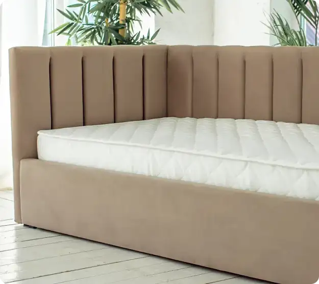 Спальное место: 90×200 см — оптимальный размер, подходящий как для детей, так и для подростков. Подъемный механизм: В комплекте идёт удобный механизм, который позволяет легко приподнимать спальное место, открывая доступ к просторному отсеку для хранения. Там можно разместить постельное бельё, одеяла, подушки или любимые игрушки, что поможет поддерживать порядок в комнате. Материал обивки: Возможность выбора ткани — Рогожка или Велюр. Оба варианта отличаются практичностью, износостойкостью и приятной текстурой. Универсальный дизайн: Кровать подойдёт как для мальчиков, так и для девочек, а широкий выбор цветов обивки позволит подобрать идеальный оттенок под любой стиль и предпочтения ребёнка.