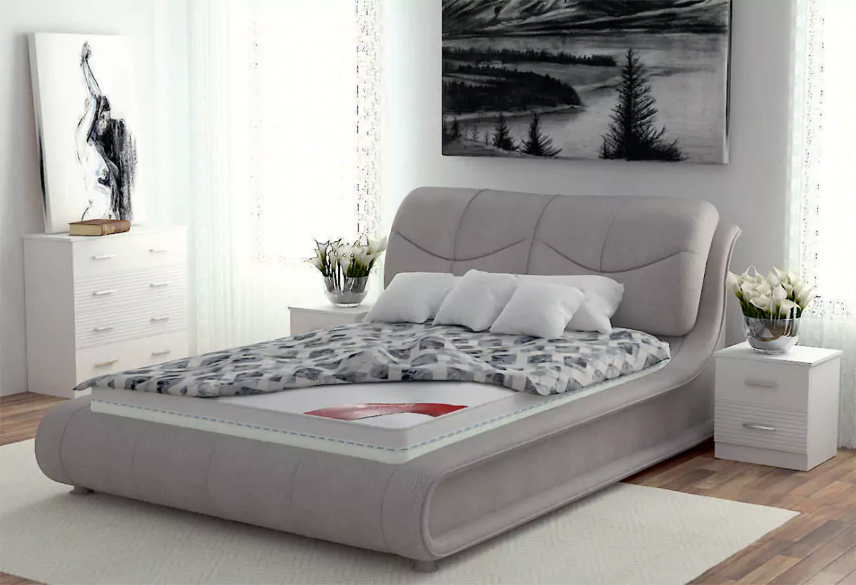 Кровать для современных интерьеровСицилия - идеальное решение для интерьеров в стиле "Футуризм" и "Модерн". Плавные линии изголовья и основания создают гармоничный внешний вид кровати, в то же время оригинальный и изысканный. Отличительной особенностью кровати является изогнутое изголовье с закрепленными накладными подушками, что позволяет наслаждаться чтением книг, журналов, а также работать с планшетом и ноутбуком в комфортном положении.